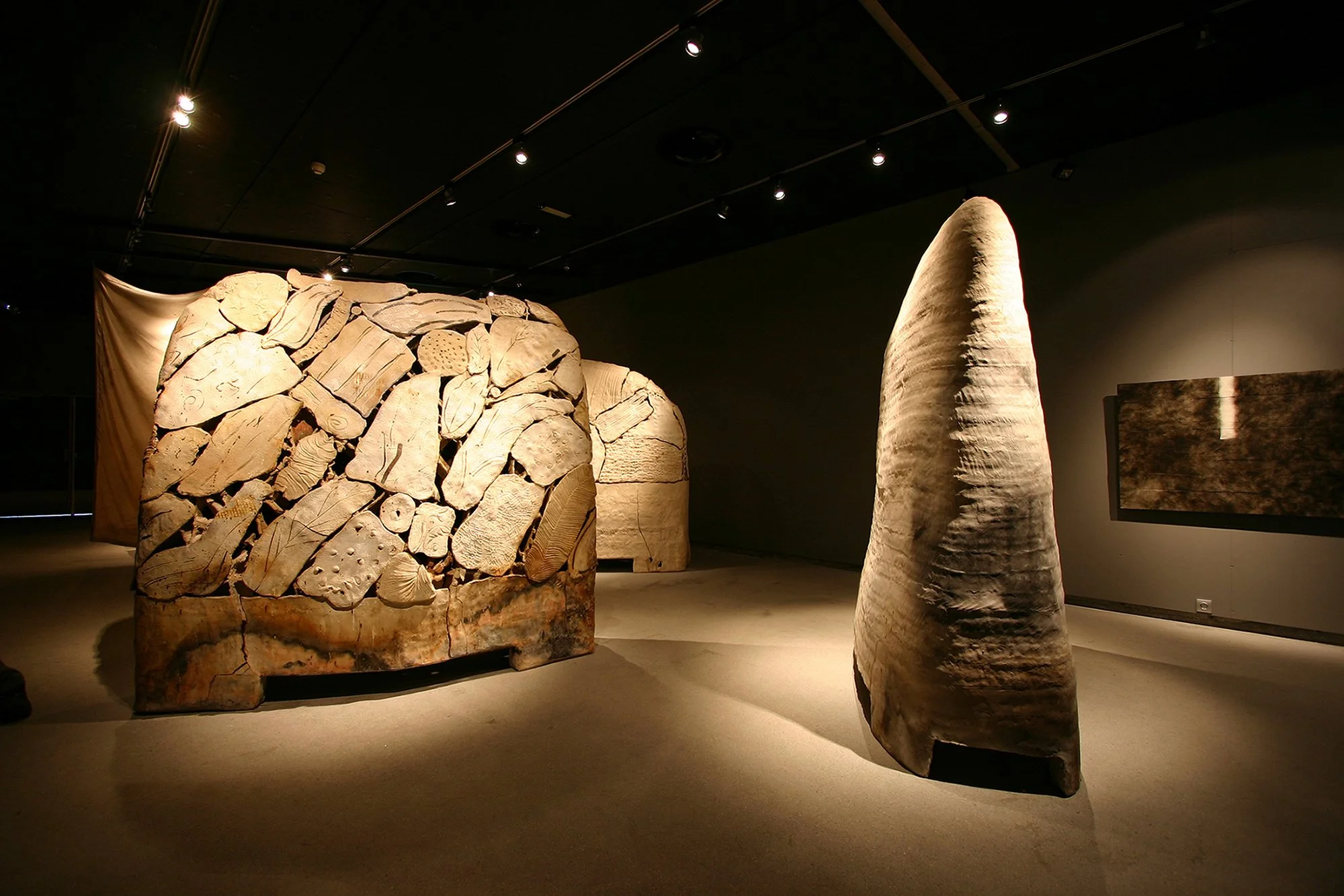 Tre store SVA som målte 200x200x100 cm ble bygget i leire. De ble brent med koks, kull, gass, ved og olje i en midlertidig stor fiberovn. De stod som massive bautaer, mot de i stykker revede, håndsydde seilene, i silke, ull og lin til tekstilkunstner Hanne Thyholdt.